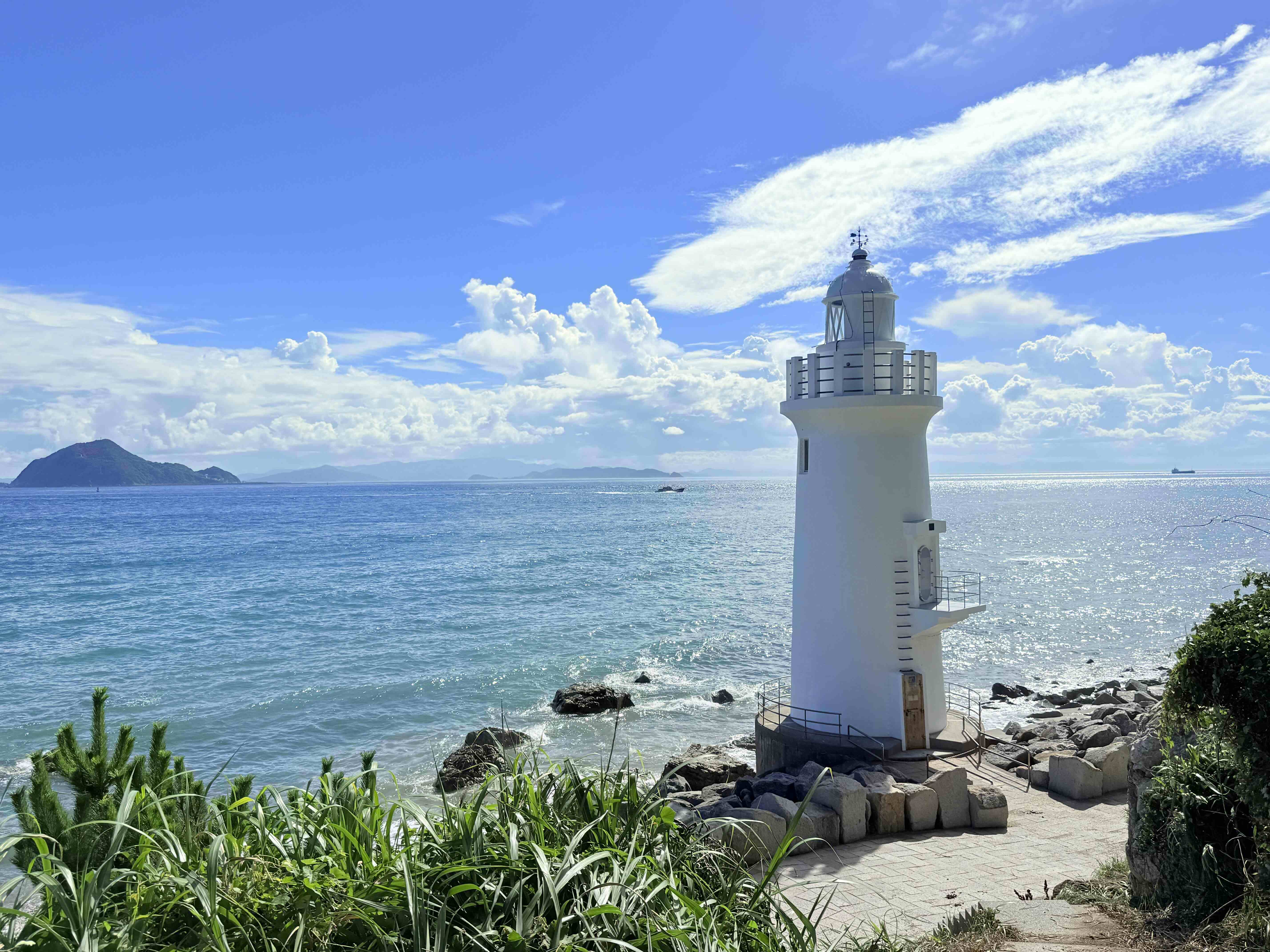 黒潮踊る太平洋と紺碧の波静かな三河湾を望む渥美半島の最先端に建つ白亜の灯台。