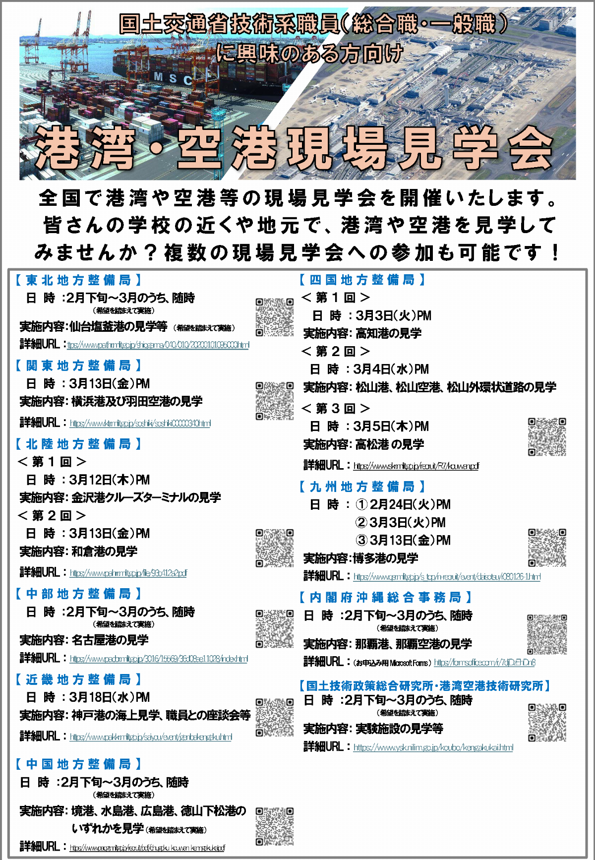 中部地方整備局以外にも全国の港湾関係部局で見学会を行っています!